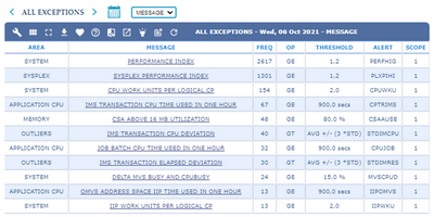 - EPVレポート例(約700種類のレポートが存在)エクセプションレポート(EPV for z/OS)
