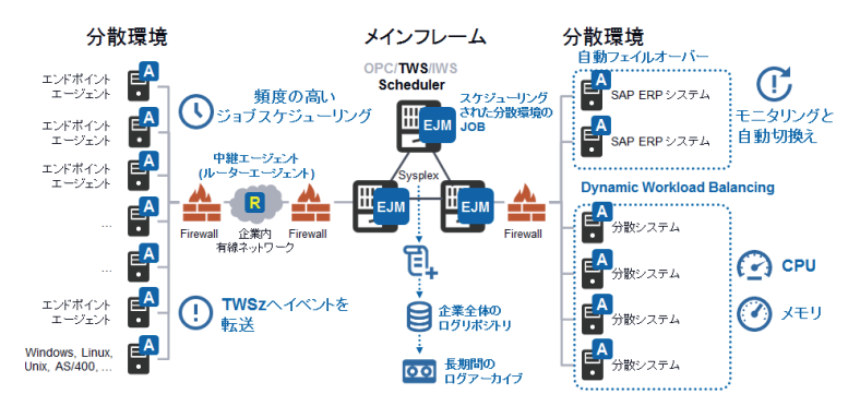 z/OS上のスケジューラーからJES、UNIX、Windows、Linux、SAPシステムといった任意の環境のバッチジョブを実行可能になります。