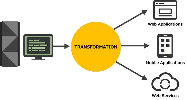 ソースコードを変更することなく、Webやモバイル、あるいはSOAP/RESTのWeb サービスとして外部に公開できるソリューションです。